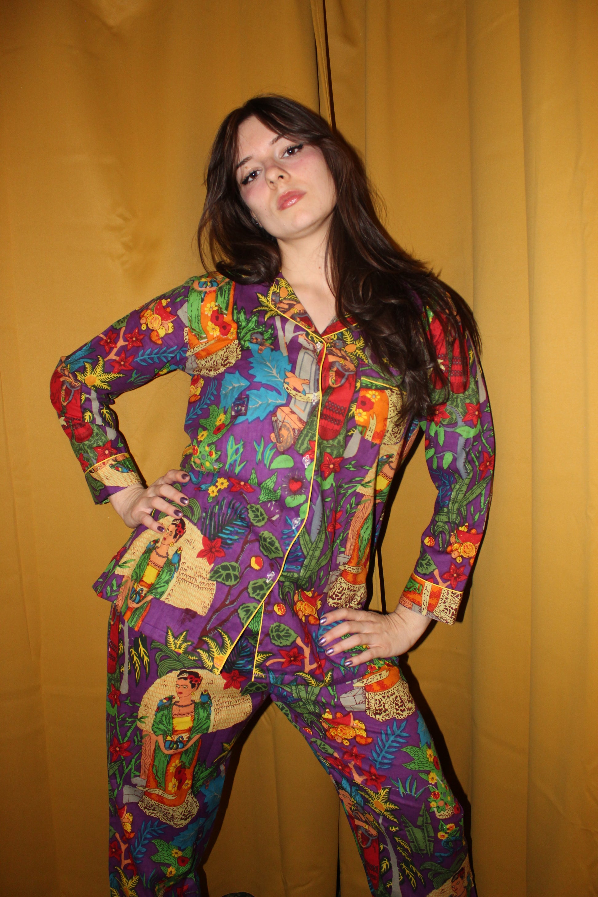 Long sleeve pyjamas with long pants. 100% Cotton. Different patterns and sizes available.